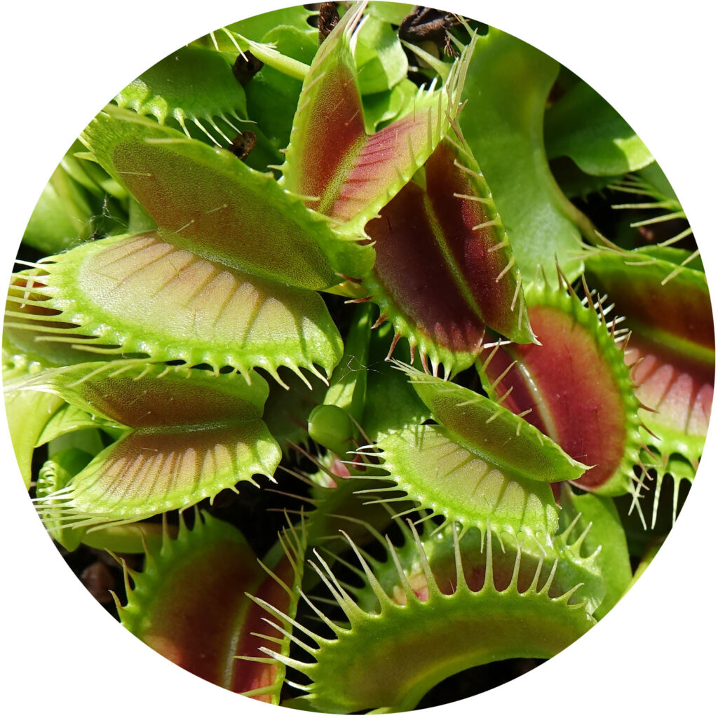 Carnivorous plants belong to 19 genera (or plant types), spread across 12 families and 6 distinct plant orders. Some groups contain hundreds of species, while others are represented by just a single member — including Dionaea, whose only species is the famous Venus flytrap.