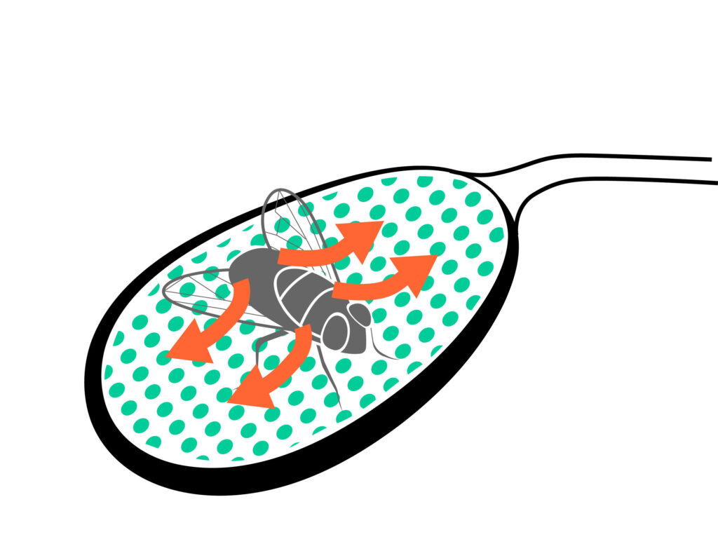 The simplest and most widespread trap type. Genera using this method include Drosera (sundews), Pinguicular (butterworts), Drosophyllum (dewy pine), and Byblis (rainbow plants). These traps rely on sticky glandular surfaces to capture insects, with some species being able to move slowly to further secure their prey.
