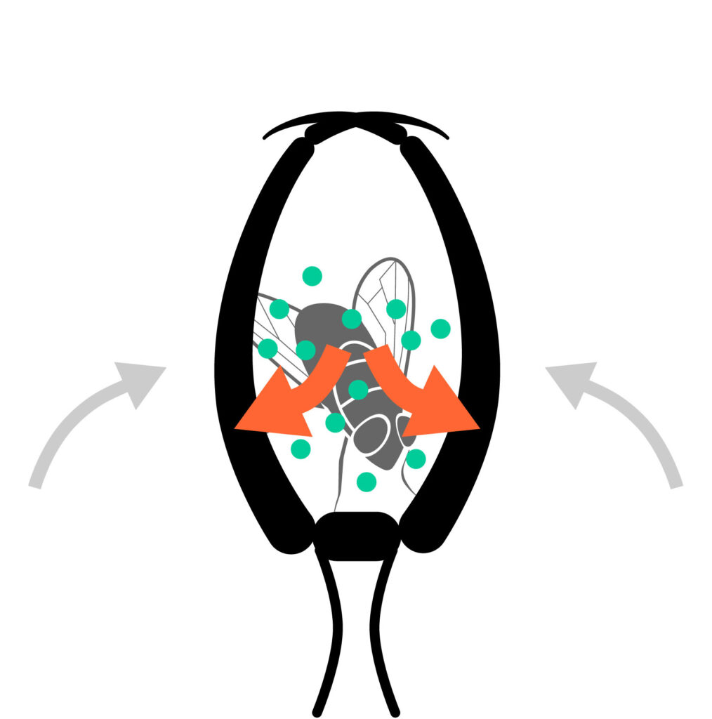 2. The trap’s door opens for a split second, sucking the prey inside.