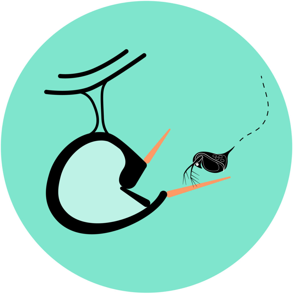 1. A trigger hair is touched by its aquatic prey, activating the trap..