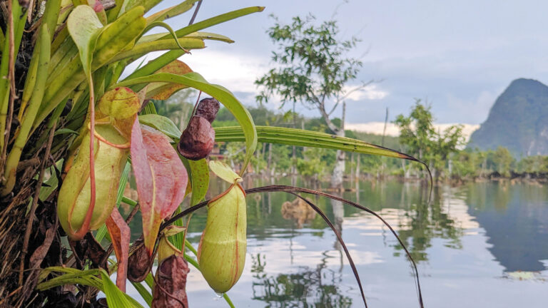 I found my first wild Nepenthes in the last place I expected — growing epiphytically in the middle of a lake.